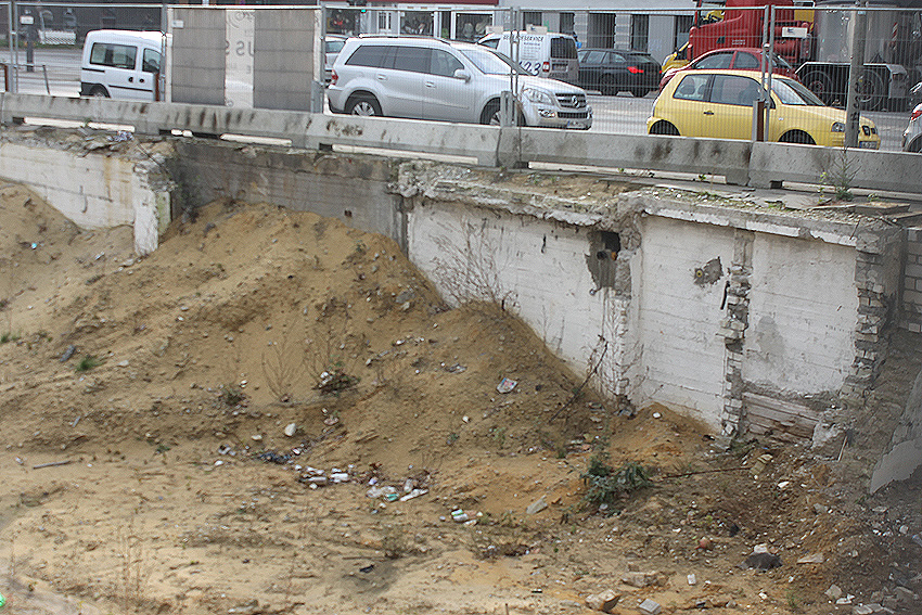 Die Maßnahmen für einen Überbau des Bunkers (Begrünung / Dachgarten in Pyramidenform u.a. mit Hotel) haben begonnen.