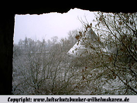 Die erste bis sechste Ebene des Turmes könnte mutmaßlich unterschiedlich zum Turm Norderneystraße aufgeteilt gewesen sein. Es könnte sein, dass hier die Ebenen in jeweils vier Raumzellen aufgeteilt gewesen waren. Hier wie auch auf den Fotos weiter oben zu sehen sind mutmaßliche Reste einer Trennwand an der Decke. Es kann aber auch sein, dass dies lediglich Deckenverstärkungsträger waren. Einige glatte Bereiche an den Resten deuten darauf hin...