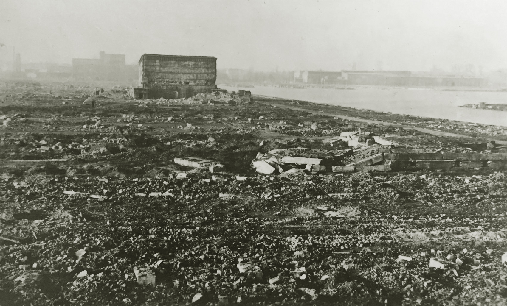 Sicht aus dem gesprengten Bunker heraus zum ebenfalls gesprengten Befehlsbunker...