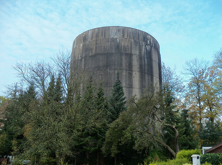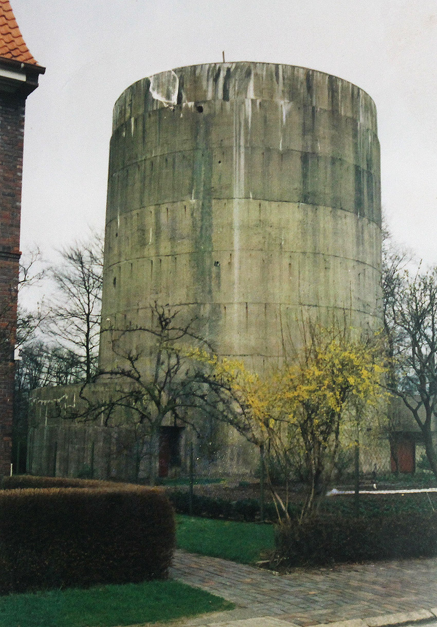 Der Bunker grenzt an seiner Westseite direkt an den Friedhof Aldenburg. Die Gräber in Verbindung mit dem Luftschutzturm bilden einen seltsamen Anblick...