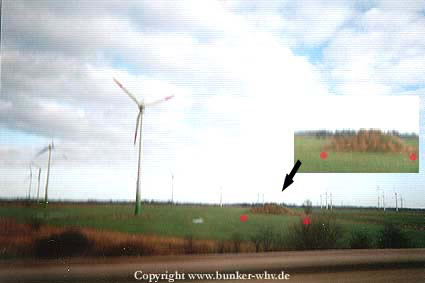 Über Größe und Art des Bunkers im Hügel kann bislang nichts gesagt werden. Es kann sein, dass das Objekt etwas mit der Flakverteidigung zu tun hatte. Ob es nach dem Krieg in dieser Form überschüttet wurde, kann nicht bestätigt werden. Uns wurde die Existenz eines Bunkers in diesem Hügel von drei Quellen bestätigt. Keinesfalls jedoch ist der Hügel ein Aushubrest der nahen Windkrafträder (Fundamente).