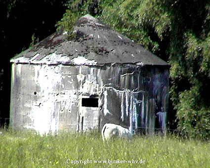 Erkennbar ist der Notausstieg an diesem Bunker rechts hinter dem Weidegitter...