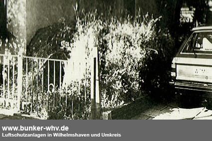 Dieser kleine Erdbunker wurde definitiv privat angelegt und kann nicht für mehr als eine Familie Platz geboten haben. Der röhrenartige Schutzraum mit Hauptzugang von außen besitzt zudem einen Eingang vom Keller des anliegenden Wohnhauses aus. Ungewöhnlich ist die direkte Nähe am Wohnhaus, welches bei einem Einsturz den gesamten Schutzraum begraben hätte. Es handelt sich hier nicht um einen Splitterschutzeingang eines LS-Kellers, sondern um eine eigenständige kleine externe LS-Anlage.