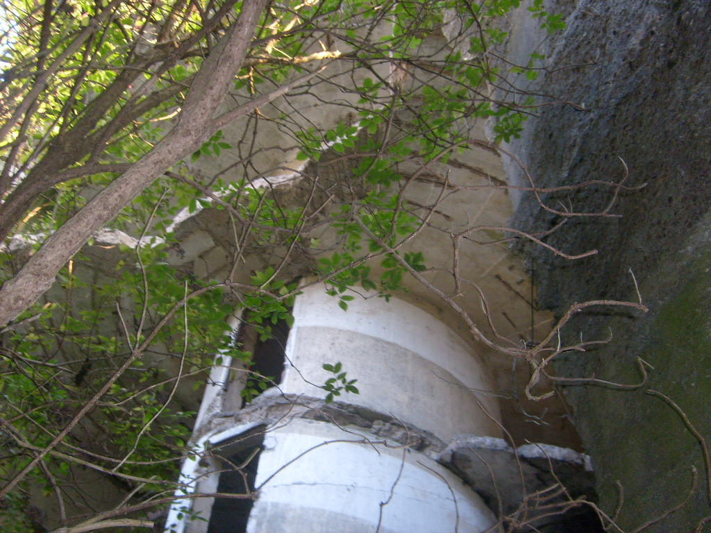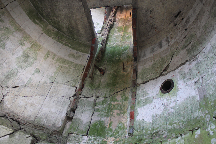 Interessant ist dieser Schacht. Er führt in der Abortsäule bis nach oben an / in die Turmkuppel hinein, die an der Stelle scheinbar einen Hohlraum (!) aufweist.