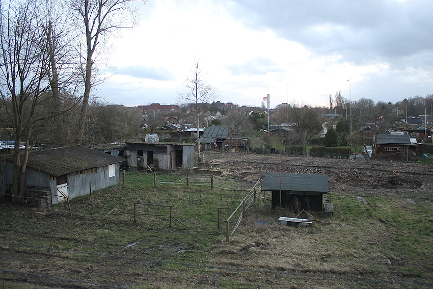 Westlich des alten Seedeiches wurde gerodet. Man erkennt den Damm des Schienenstranges im Bereich des alten Verladebahnhofes.
