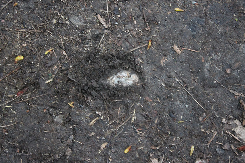 Wir haben dann einige Tage später mit dem Spaten ein wenig gegraben. Der Tobrukstandverdacht konnte noch nicht bestätigt werden, er ist nun aufgrund der Form des Haupttrümmerteiles wieder unwahrscheinlicher geworden: