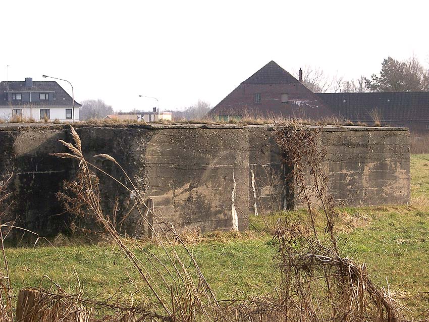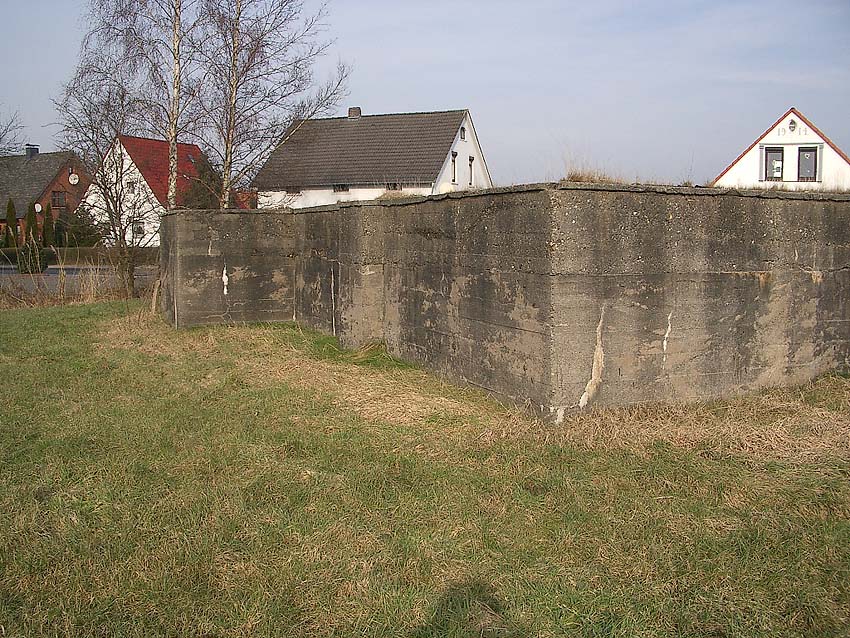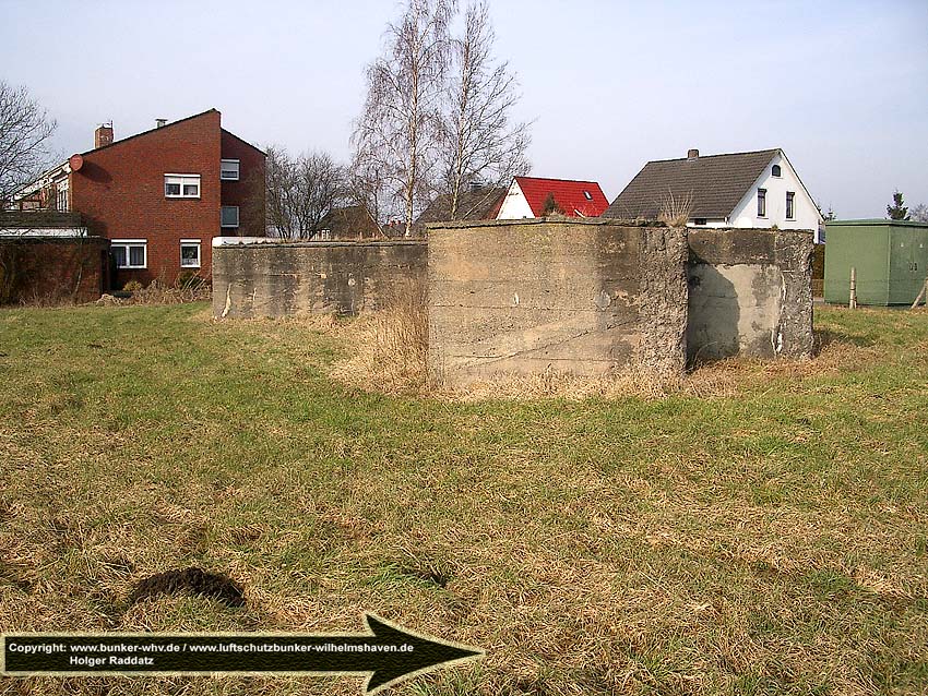 Dieser Deckungsgraben kann auch als "Zickzackbunker" bezeichnet werden, eine kleinere Variante der betonierten Deckungsgrabenbauart, wie sie in unserer Region in Emden des öfteren errichtet wurde. Der Graben war zumindest äußerlich annähernd bauartgleich zum Deckungsgraben in Sande an der Hauptstraße, jedoch wurde er im Aufbau genau spiegelverkehrt realisiert.