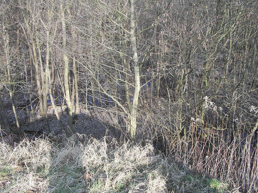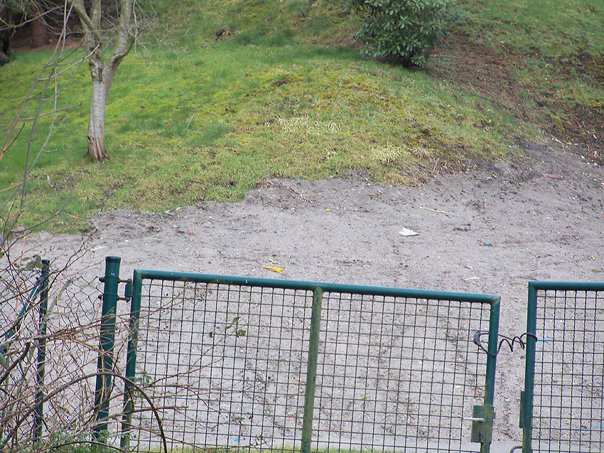 Dies war damals die Siemensstraße. Unter dem Bewuchs sind noch heute Kopfsteinpflasterteile zu finden...