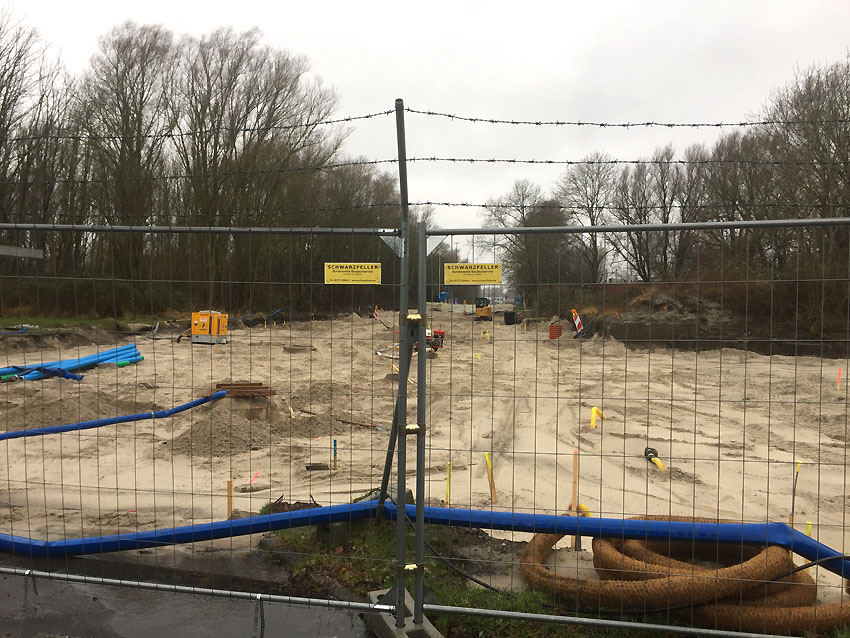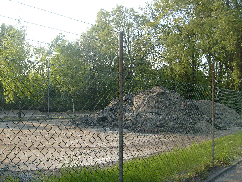 Der gesamte Parkplatz ist erneuert / umgewandelt worden zu einer Stellfläche wohl für Schwerfahrzeuge und ein neues großes Tor wurde an Stelle des alten Tores in die Geländeumzäunung eingebaut.