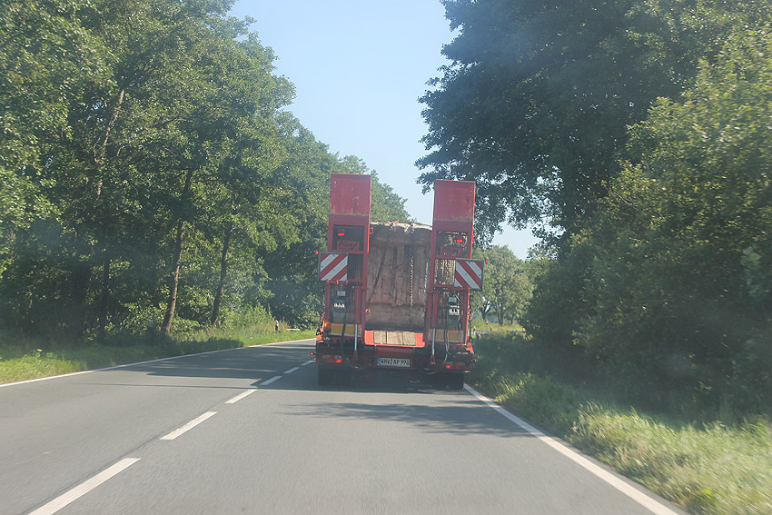 18. Juli 2013: Nach einem halben Jahr Vorbereitung und Koordinierung sagen wir heute: "Ende gut, alles gut!" Der Tobrukstand als interessantes, martialisches Zeugnis des geplanten "Friesenwalls", in einem Friedeburger Erdloch für einen MG-Schützen Ende 1944 gegossen, wurde heute intakt nach Wilhelmshaven verbracht. Er steht nun als erster von fünf Kleinbunkern auf dem IEHF-Gelände am Kanalweg. Wir danken der Firma Hepag für den reibungslosen Transport, der Interessengemeinschaft zur Erhaltung historischer Fahrzeuge für den Stellplatz, der Firma JK-Fahrzeugtechnik für die Holzspende, dem WZ-Fotografen für die Ausdauer (wir hatten uns um ca. 30 min. mit der Ankunft verschätzt) und Herrn Wiard Remmers, der alles damals und bis jetzt durch seine Hilfe erst ins Rollen brachte.