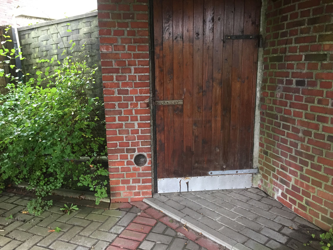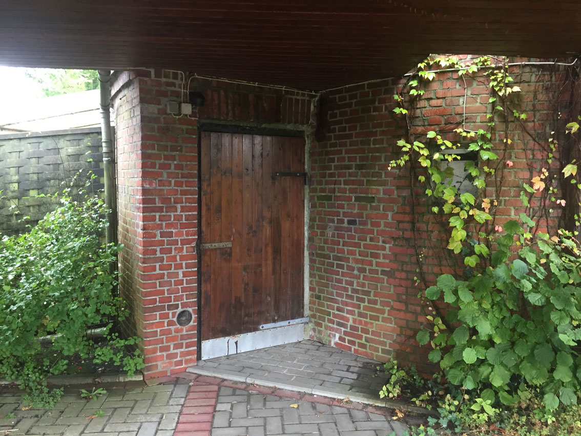 Stand Oktober 2023: Das anliegende Gebäude samt Bunker steht mittlerweile leer und zum Verkauf.