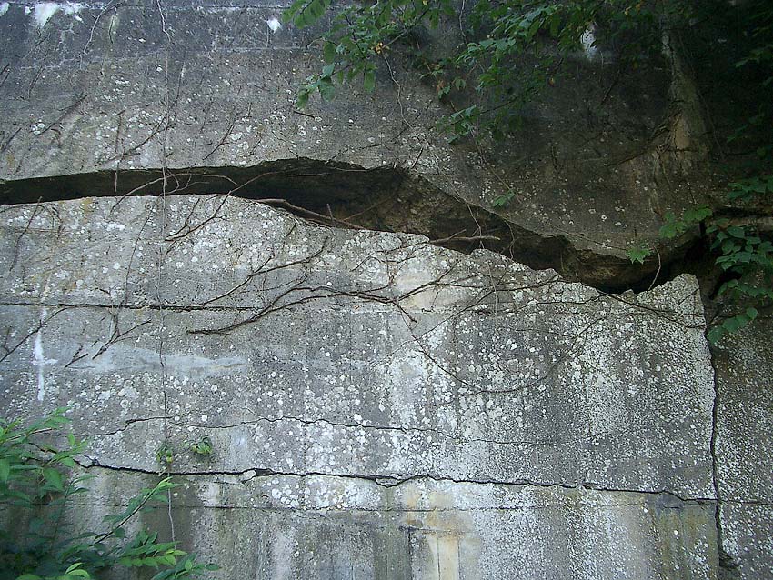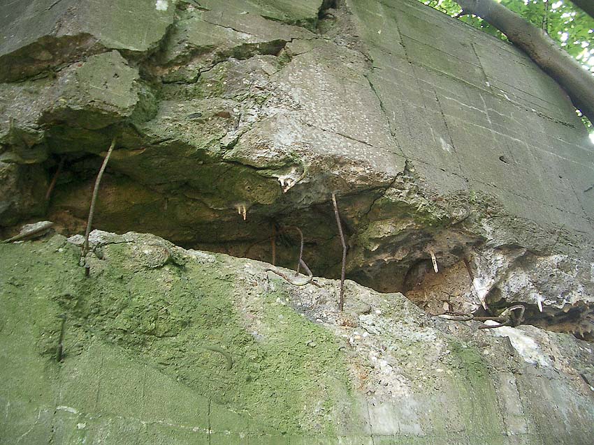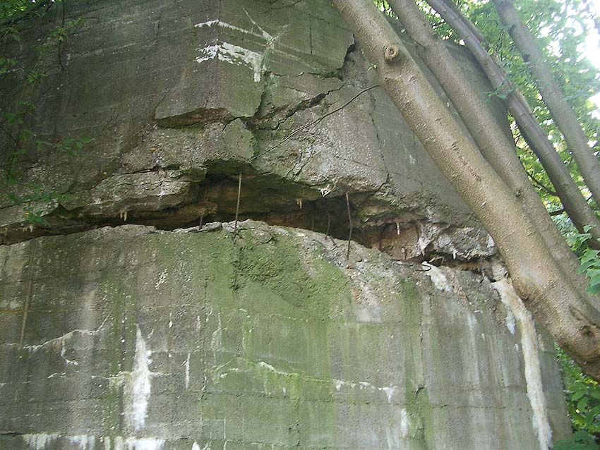 Hier zu sehen der Baufortschritt des Bunkers, als FL 354 "A" Mitte bezeichnet. Auch werden hier Bauwerke mit der Bezeichnung FL 354 "B" aufgeführt. Uns ist jedoch momentan nur der FL 354 und der FL 354A als Regelbau geläufig. Wohl ist hier mit "A" der FL 354 gemeint und mit "B" der FL 354A. Demnach ist der vorliegende Bunker mit ziemlicher Sicherheit ein FL 354 (mit leichten Bauabweichungen) gewesen. Siehe auch die Risse unten.