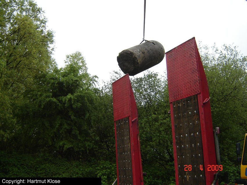 Neuester Stand: Wahrscheinlich keine Westermann-Zelle, sondern Splitterschutzzelle Fabrikat Klöckner / Klöckner-Stahlwerk Osnabrück / gefertigt im Zementwerk Piesberg / kleine Bauform / 25 cm Wandstärke / RL 3-43/41