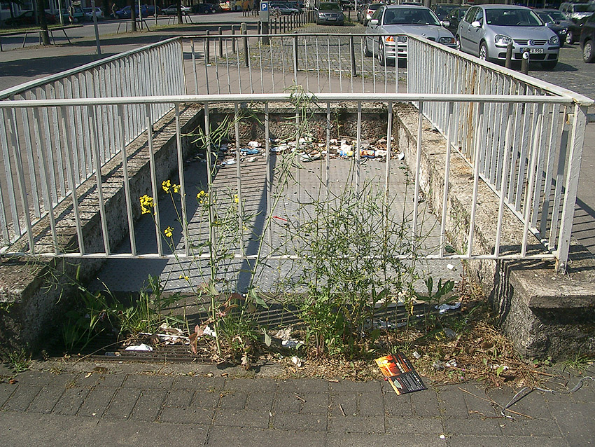 Bereits am 22. Mai 2008 entstanden diese Aufnahmen des Dachbereiches vom Tiefbunker unter dem Klagesmarkt in der Nordstadt mitsamt seiner Eingänge und einem Lüftungsturm: