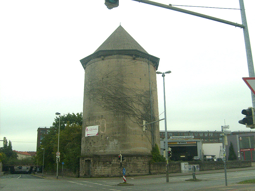 Ebenfalls an diesem Tage wurde der noch immer im entfestigten Rohzustand vorhandene Hochbunker Haltenhoffstraße in der Nordstadt fotografiert. Bis heute, im September 2010, hat sich nichts an diesem Zustand geändert, obwohl bereits vor zweieinhalb Jahren ein Umbau angekündigt war: