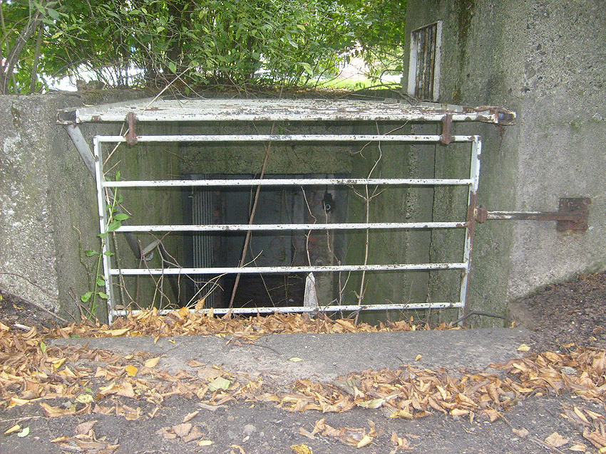 Zur Tarnung wurde der Bunker in eine Häuserzeile integriert und erhielt ein Spitzdach.