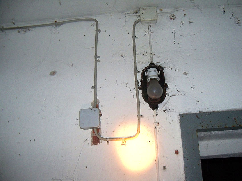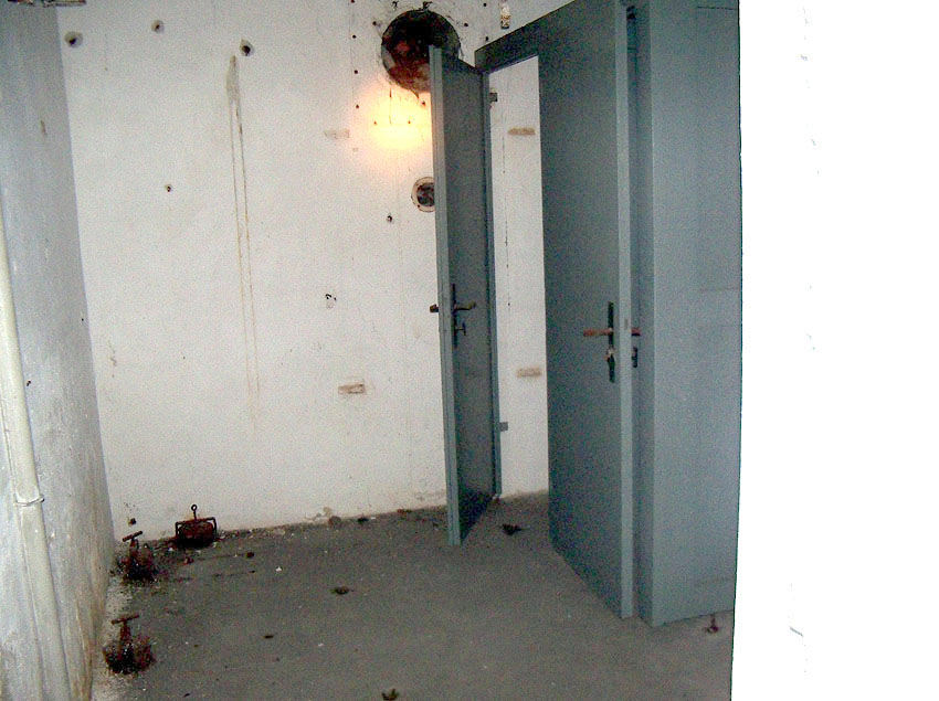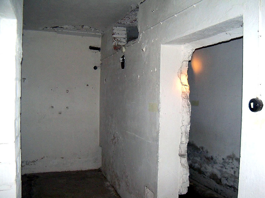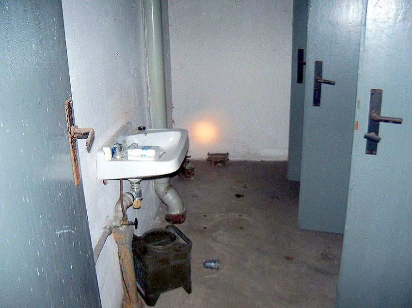Die folgenden Aufnahmen stammen allesamt aus dem Erdgeschoss. Das Obergeschoss ist aufgrund extremer Feuchtigkeitseinwirkung in Folge starker Undichtigkeiten der Bunkerdecke und stehendem Wasser momentan nur mit Mühe begehbar.