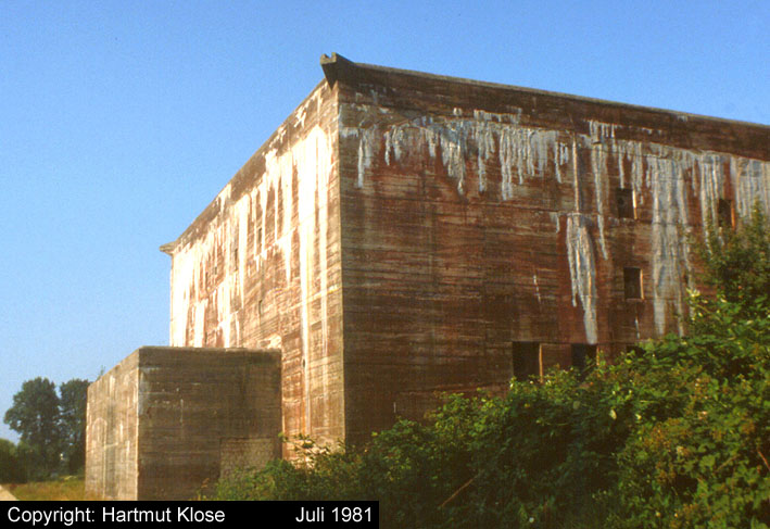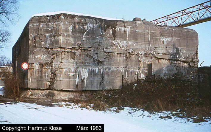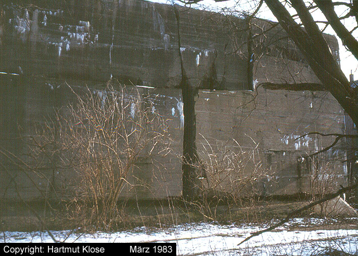 Aufnahmen des gesprengten Regelbau-Bunkers R 661 auf dem Gelände der ehemaligen UTO-Werft / Westwerft. Der Bunker ist heute im fast vollkommen überschütteten Zustand noch immer vorhanden. Aufnahmen aus den Jahren 1981 und 1983.