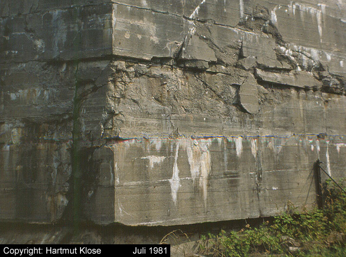 Aufnahmen des Truppenmannschaftsbunkers 750 2 an der Emsstraße. Der Bunker ist vom September 2014 bis Februar 2015 abgerissen worden. Aufnahmen aus den 1970er Jahren, 1972 und 1985.