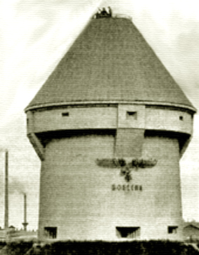 "Immelmann-Turm" auf dem Werksgelände der Zellstoff AG / später Firma Boehringer & Söhne. Bald nach dem Krieg teilgesprengt und später komplett beseitigt.