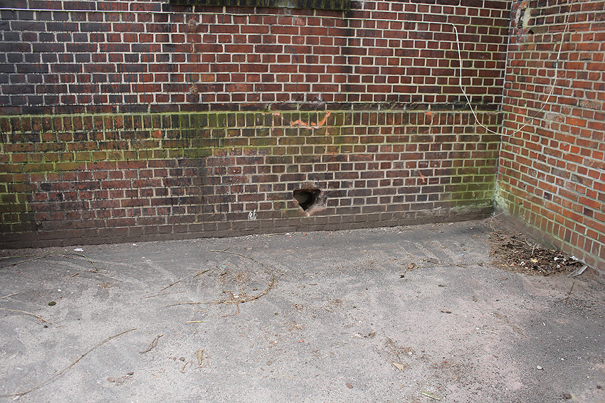 09.09.10: Es handelt sich hier um eine Nachkriegsluftschutzanlage der Bundeswehr, eventuell um einen so genannten "BW-50"-Schutzraum für 50 Personen. Ein ähnlicher Bunker befindet sich in Emden an der Straße Am Tonnenhof.