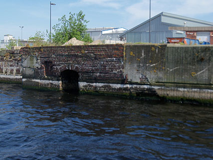 Was hat es mit den zum ehemaligen so genannten Alten Hafentor gehörenden Toraufnahmebauwerken an der Hafeninsel (Nordbauwerk) und an der gegenüberliegenden Seite des Verbindungshafens (Südbauwerk) direkt östlich neben der ehemaligen 1. Einfahrt auf sich? Befanden oder befinden sich in den teilweise betonierten Konstrukten (dies geschah großteilig jedoch nach dem Zweiten Weltkrieg) Verbunkerungen? Im südlichen Objekt ist je nach Wassergleiche mehr oder weniger gut eine Öffnung zu erkennen, die sehr an eine Art Tür, welche im hier fotografierten Zustand halb unter Wasseroberfläche liegen würde, erinnert (mittleres Bild am Pfeil und untere beiden Bilder). Was ist das?