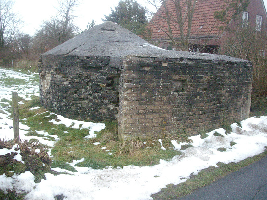 - An den Rundbunker ist nahe nordwestlich Mitte 2015 bis Anfang 2016 ein Einfamilienhaus gebaut worden. Der Bunker ist bis dato weiterhin unversehrt im obigen Zustand erhalten geblieben.