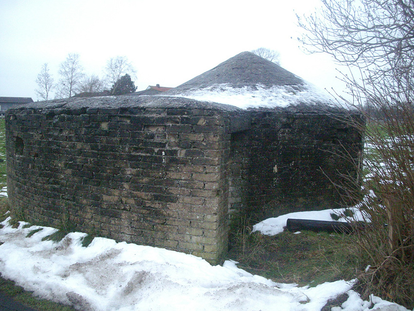Der Betonkörper des Bauwerkes ist (wie viele andere Rundschutzbauten dieser Art ebenfalls) mit einer Mauerwerkschicht umkleidet worden. Die Mauerwerkschicht außen diente auch als "Puffer" im Falle eines Nahtreffers (Splitter).