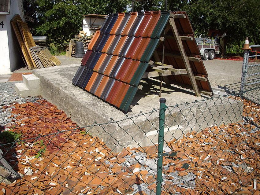 15.01.18: Der Eingang, der sich genau hinter der oben abgebildeten Steinplatte (nicht hinter der Treppe) an der Südwand des Bunkers befindet, wurde inzwischen freigelegt und geöffnet. Das "Werbedach" auf der Decke wurde mittlerweile entfernt.