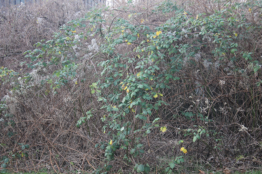 Der Deckungsgraben ist auch in der Winterzeit komplett mit Brombeersträuchern dicht überwachsen. Die Fotos entstanden am 25. Dezember. Ganz wenig ist der Bereich des Osteinganges zu erkennen.