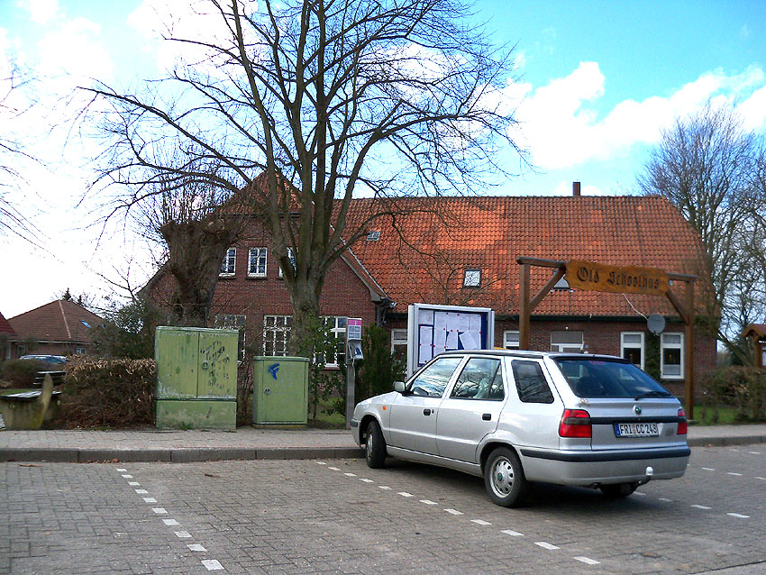 Die gegenüberliegende alte Schule Moorwarfen, für die Schule war der Deckungsgraben Schutzraum. Es fanden in der Anlage aber auch die Anwohner Schutz.