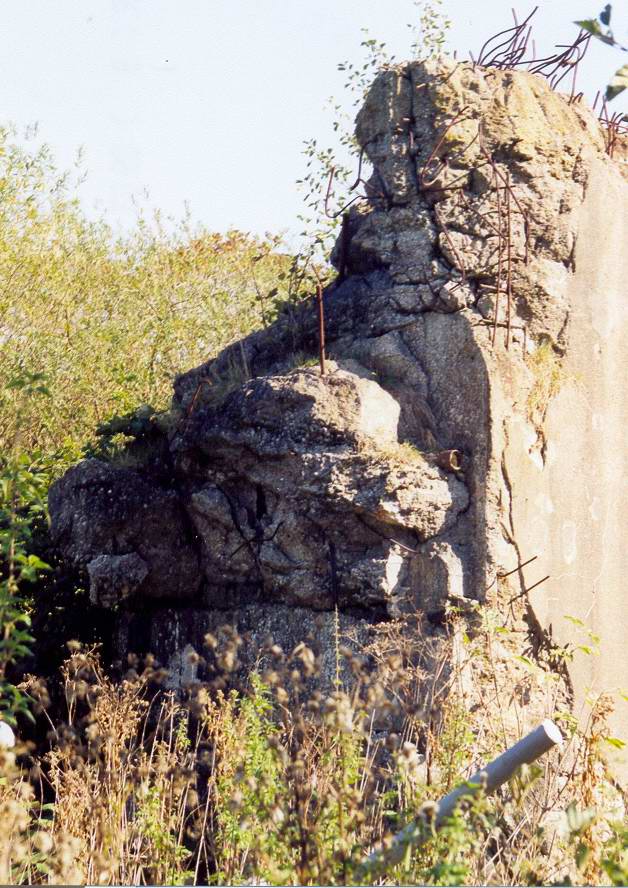 Nun sind die gesamten Reste der Nordflanke der ehemaligen Verbunkerungen klar erkennbar. Diese bleiben weiterhin erhalten und stellen nun eine Art künstliche Klippe dar. Die gewaltige Betonfront erstreckt sich von Westen nach Osten über fast 250 Meter hinweg...