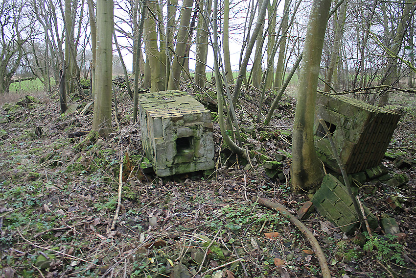 In Bohnenburg südlich von Hooksiel befinden sich an der Bohnenburger Reihe diverse Trümmer. Teilweise aus Beton, teilweise aus Mauerwerk. Diese historische Straße war eine der Zuwegungen zum nicht mehr existenten Dorf Inhausersiel, welches in den 1970er Jahren aufgrund Industrieansiedlung abgerissen wurde. Auch an der Bohnenburger Reihe standen Gehöfte, die teilweise für dieses Vorhaben mit abgebrochen wurden. Auf dem Gelände des ehemaligen Hofes Nr. 12 befindet sich ein kleines Trümmergebiet mit zwei markanten, sehr massiven Schornsteinen, welche umgekippt sind. Zudem sind Stahlträger im Bereich einer eingestürzten Decke zu sehen. Solche Schornsteine sind auch als Lüftungstürme von Splitterschutz-Luftschutzbauten weit verbreitet realisiert worden. Könnte es sich bei den Trümmern um einen zerstörten Deckungsgraben mit Wänden großteilig aus Mauerwerk handeln? Hier
