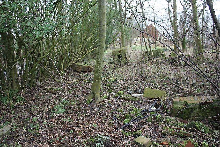 Wiesbadenbrücke: Nicht unerhebliche Teile der Ostdachecke des Tiefbunkers sind bereits abgerissen. An Objekt 2, welches wohl eine Zisterne darstellte, erinnert nur noch eine Erdkuhle mit einigen Trümmerstücken. Hier