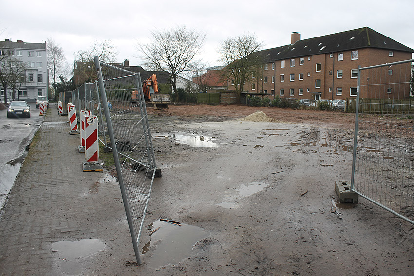 Ehemalige Schule Allerstraße / Rundbunker-Fundamentplatte: Es scheint sich etwas zu regen auf dem Gelände. Der Bauschutt wurde abgefahren und das Gebiet abgezäunt. Wir berichten weiter. Hier