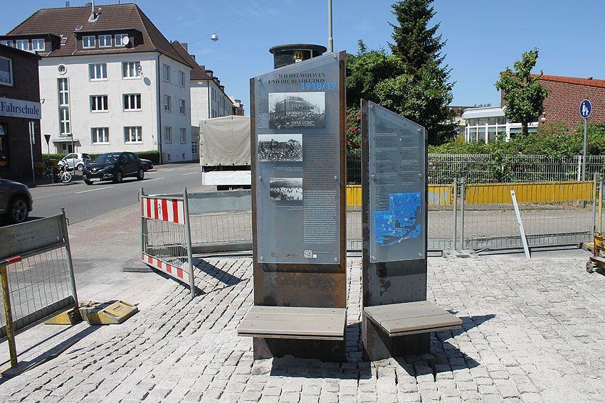 Deckungsgraben Nord ehemaliger Botanischer Garten: In diesen Tagen wird an der Westseite des Bunkers ein Denkmal zur Erinnerung an den Matrosenaufstand vor 100 Jahren aufgebaut. Die gestaltete Fläche mit den dortigen Stelen stellt einen von 10 (bzw. 9 / 1x Doppelstandort) Standorten im Wilhelmshavener Stadtgebiet dar, die an diesen Aufstand erinnern. Gegenüber am ehemaligen Tanzcafé Elisenlust (später Casablanca) war einer der Kernpunkte des historischen Ereignisses. Die Gestaltung dieser Gedenkstelle macht einen Erhalt des Deckungsgrabens, der genau angrenzt, wieder wahrscheinlicher. Mittelfristig soll hier noch ein weiteres Denkmal bezüglich des Matrosenaufstandes hinzukommen.