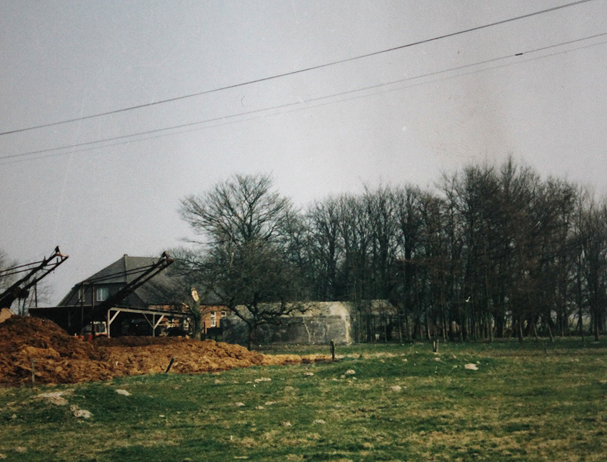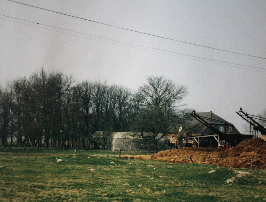 Der Fotograf (Johann Borsch) ist seinerzeit auf die Weide gegangen und hat den Bunker von dort fotografiert. 1998 war das Wohnhaus bereits mit roten Ziegeln neu gedeckt. Aber man sieht im 1998er Bild rechts unscharf noch immer einen der beiden im alten Bild erkennbaren Metall-Arbeitsausleger. Hier