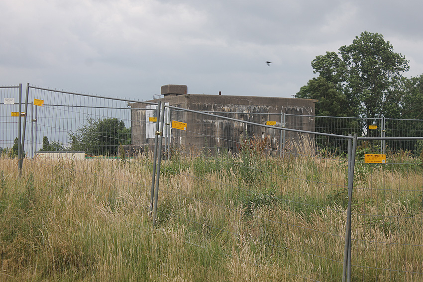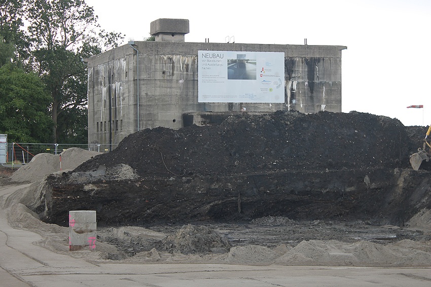 Sanierungsgebiet TWWP - Das Gelände rund um den Bunker wurde nun abgezäunt. Die Arbeiten zur Dekontaminierung des umliegenden Bodens sind angelaufen. Erdbodenbereiche wurden bereits umgeschichtet. Auch der Bereich des noch immer vorhandenen Fundamentes des anliegenden ehemaligen Öltanks "Grodenfähre Nord" wurde freigeräumt. Das Ring-Fundament ist nun klar ersichtlich. Bilder vom 27. / 17. / 16. / 13. Juni 2018 und 12. Mai 2018. Hier