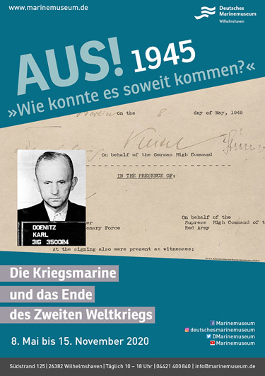 Das Deutsche Marinemuseum untersucht in seiner Sonderausstellung die Rolle der Kriegsmarine zum Ende des Zweiten Weltkrieges, das sich 2020 zum 75. Mal jährt. Die Ausstellung läuft vom 8.5. bis zum 15.11.2020.