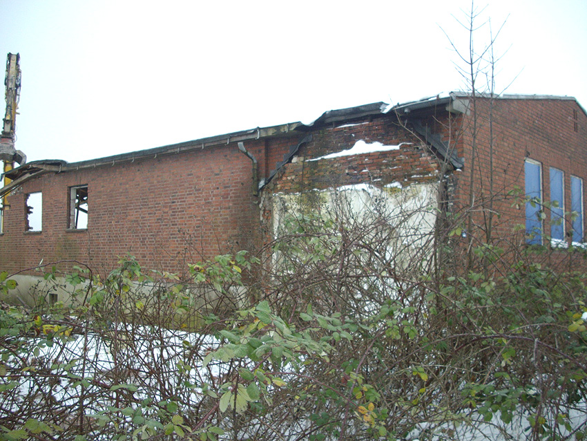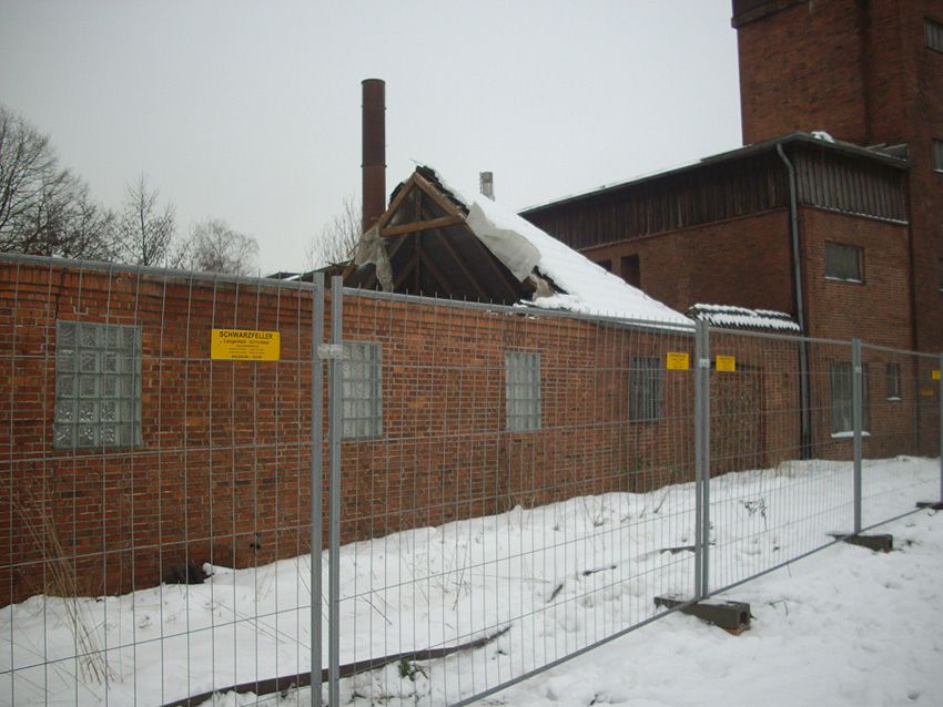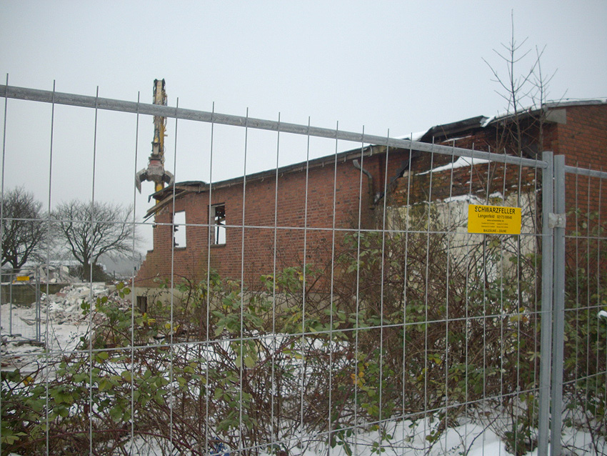 Banter Kaserne / Abriss des westlichsten Hauptgebäudes vollendet / Abriss des ursprünglich westlichsten Hauptgebäudes eingeleitet / Gebäude bis zum 23.12.09 zu zwei Dritteln entfernt / sämtliche Verbindungsgebäude komplett abgerissen / Impressionen Bereich Trafohaus / Stellwerk / 22.12.09 / 23.12.09 / 26.12.09