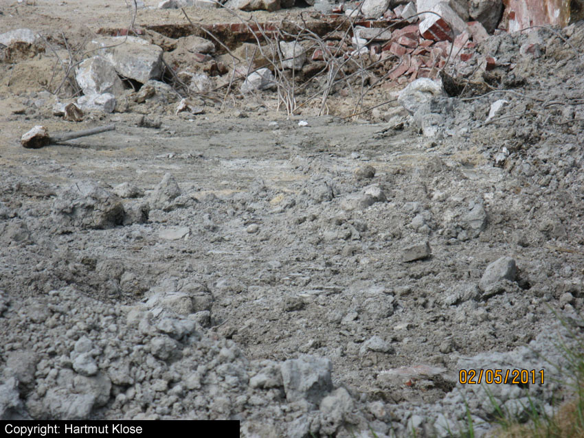 Die Abbrucharbeiten des Fundamentes nähern sich ihrem Ende und damit auch unsere Dokumentation über das Objekt. Die Gründungsholzpfähle, beziehungsweise das, was davon noch existiert, werden allem Anschein nach komplett im Erdreich belassen.