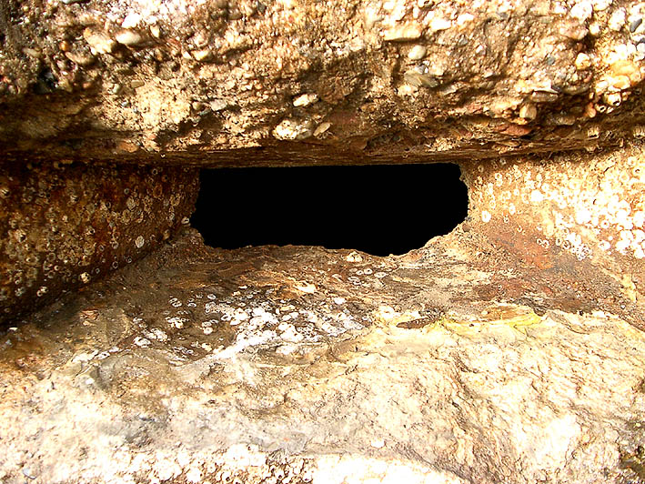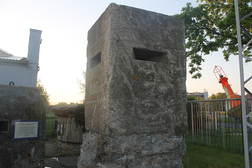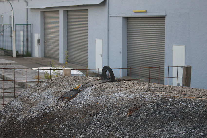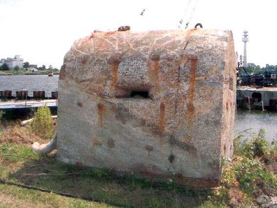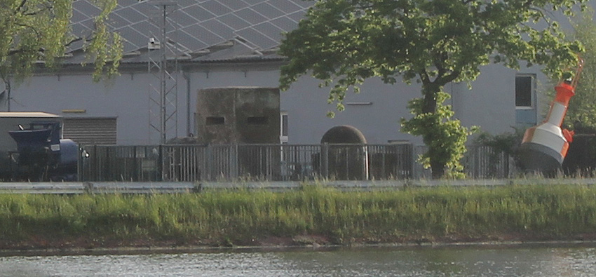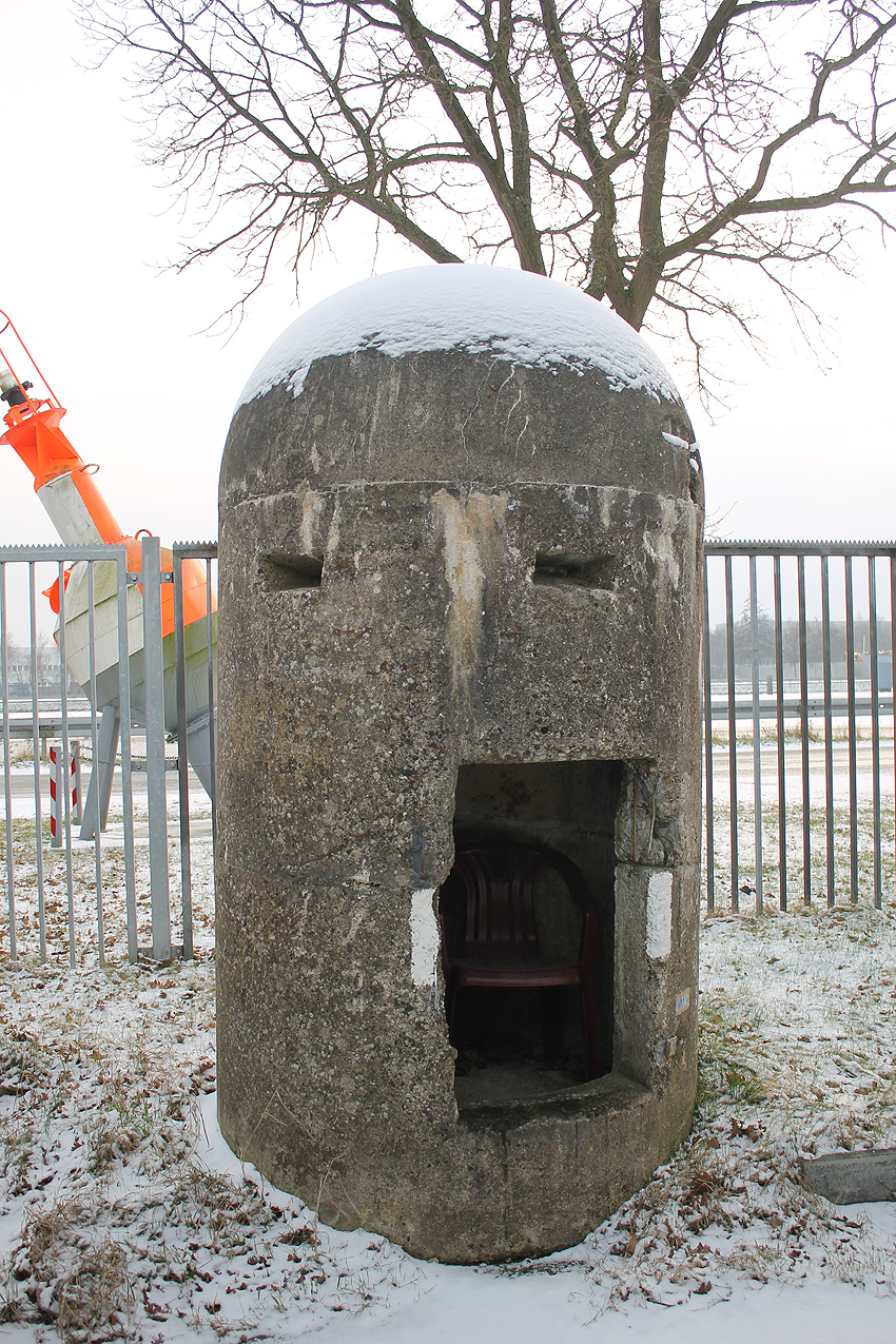 Aufnahme vom 11.8.1944: Der Originalstandort am Kai. Der Unterstand steht 45 Grad schräg zum Ufer (nur circa 5 Meter von der Kaimauer entfernt), um in ihm den gesamten Hafenbereich optimal einsehen zu können...
