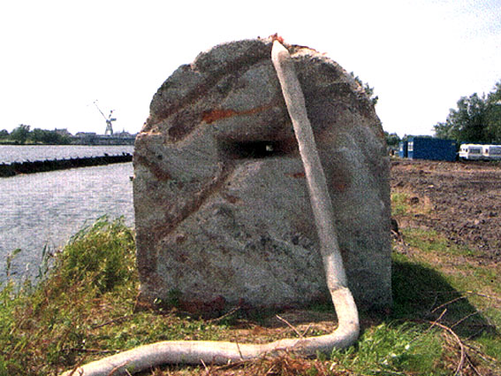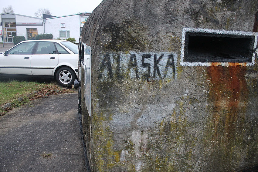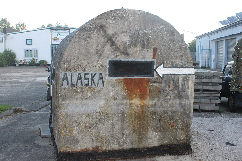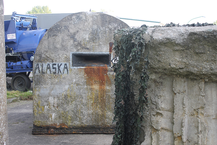 12. Mai 2014: Heute wurde unser Splitterschutzunterstand Alaska bei äußerst bescheidenem Wetter zum Kanalweg 15 zu den beiden dort bereits vorhandenen Kleinbunkern umgebettet. Der Unterstand hat die Umsetzung nahezu unversehrt überstanden. Der Zahn der Zeit hat arg am 20-Tonnen-Splitterschutzunterstand gefressen. Es wird eine erneute Renovierung und das Wiedereinsetzen der Tür etc. erfolgen. Die beiden anderen Kleinbunker werden in einem Rutsch mit instand gesetzt. Der Stellplatz erhält eine Umrahmung und wird mit Split versehen. Nach diesem für uns erfolgreichen Tag, den man sich trotzdem aufgrund der Ereignisse nicht wieder wünscht, macht „Bunker-WHV“ erst einmal einige Tage Bunker-Urlaub. Wir danken herzlich allen Beteiligten für die reibungslose Durchführung der Aktion. Unser Dank auch an die Firma Jade-Weser-Lift für das Verladen / den Transport und an die IEHF für den Stellplatz. Wir hoffen, dass die Ruhe bezüglich unserer Beschäftigung mit Bunkern, die wir immer wollten und wollen im Hinblick auf die Wilhelmshavener Bunkerinteressierten und die Bunkergeschichte der Stadt nun wieder eintritt.