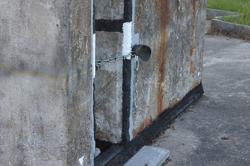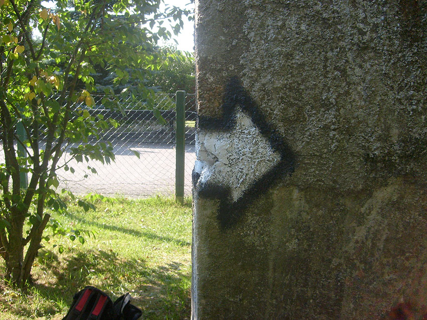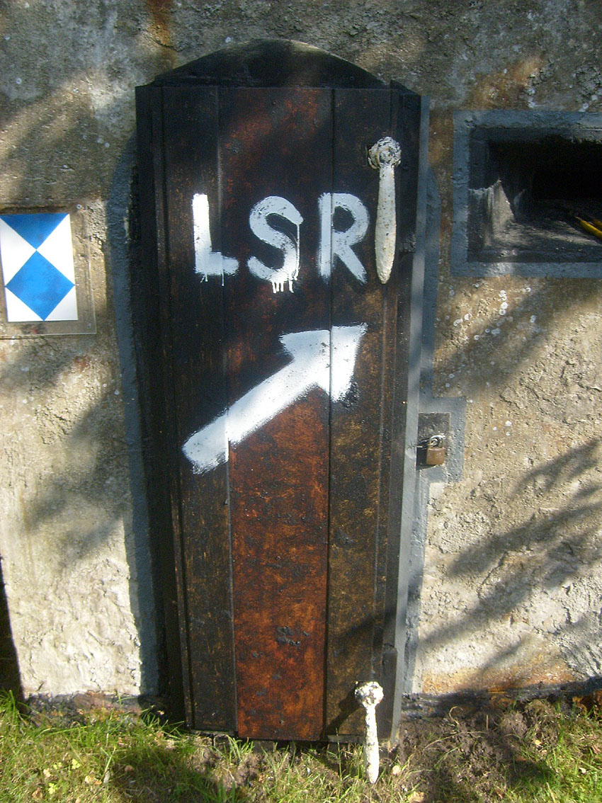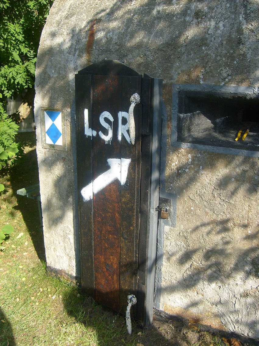 Am 28.07.10 wurde die Tür, inzwischen vom Wetter angegriffen, repariert. Ein LSR-Hinweis und ein LS-Pfeil wurde angebracht: