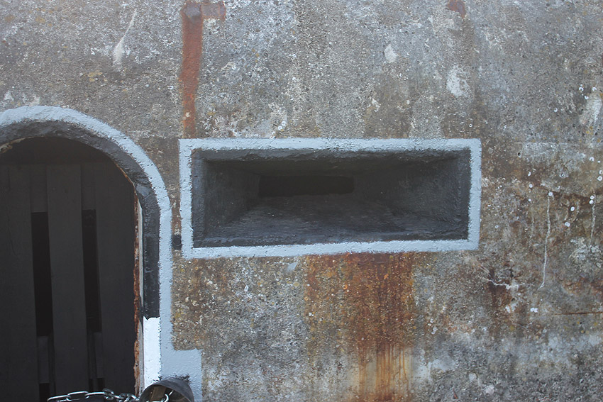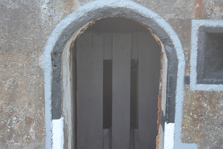 Zwischen dem 23.06.07 und dem 09.07.07 wurde die Tür verändert. Durch ihre Verblendung, sowie durch die Anbringung zweier Türriegel soll sie nun der vermuteten Originalerscheinung näher kommen: