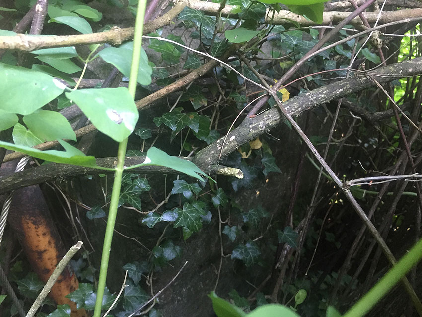 Dies muss der Notausstieg gewesen sein. Er scheint nach dem Krieg verschlossen worden zu sein. Es kann auch sein, dass der gesamte Betonblock nachträglich vor den Ausstieg gegossen wurde.