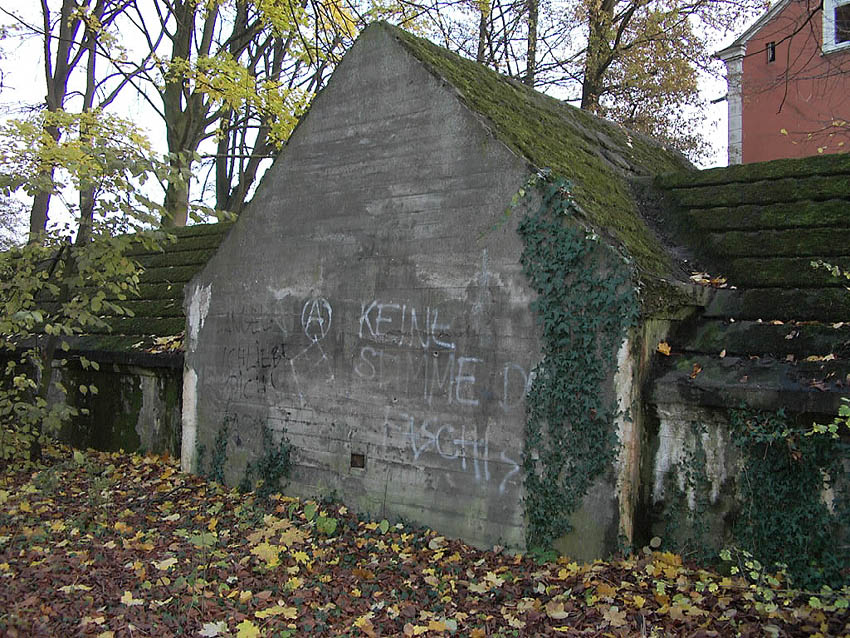 September 2013: Die Umbauarbeiten am ehemaligen Schulgebäude sind fast beendet. Der Deckungsgraben ist weiterhin unversehrt. Es bleibt abzuwarten, wann bzw. ob der Zusatzeingang für den NABU (Fledermausschutz) an dessen Nordseite eingebracht wird...