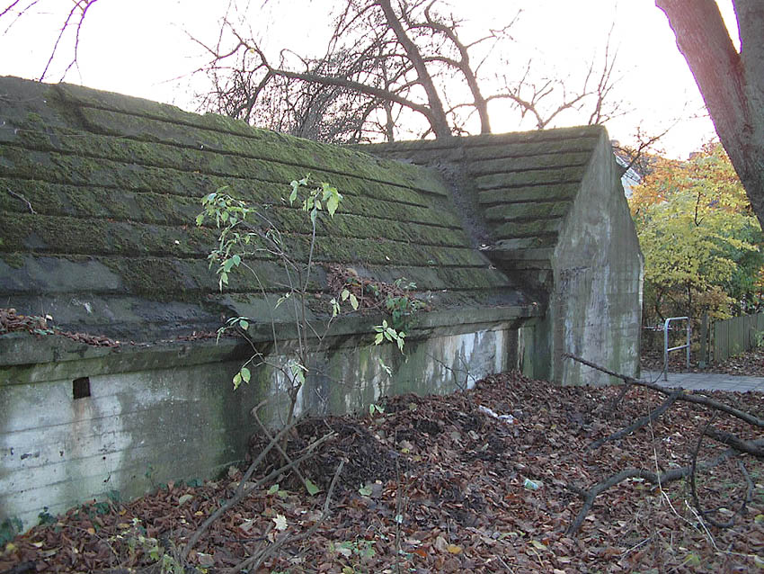 Die Furchen im Dach sollten zur Aufnahme von Dachpfannen aus Tarnungsgründen und für die ästhetische Erscheinung dienen. Diese Maßnahme scheint hier in Neuende jedoch nicht durchgeführt worden zu sein.