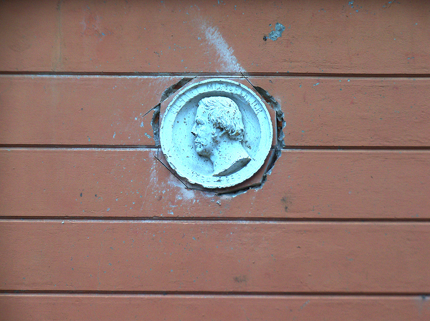 Eilhard Mitscherlich - das steinerne Relikt an der Schulwand sollte anscheinend bereits aus der Wand geschlagen werden...