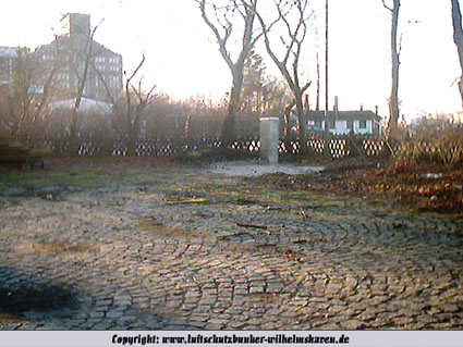 Der Standort heute (mittig dieses Bildes stand die Zelle, die Fundamentplatte ist in Resten noch erhalten), die Straße wird saniert, der Fuß- und Radweg verbreitert...
